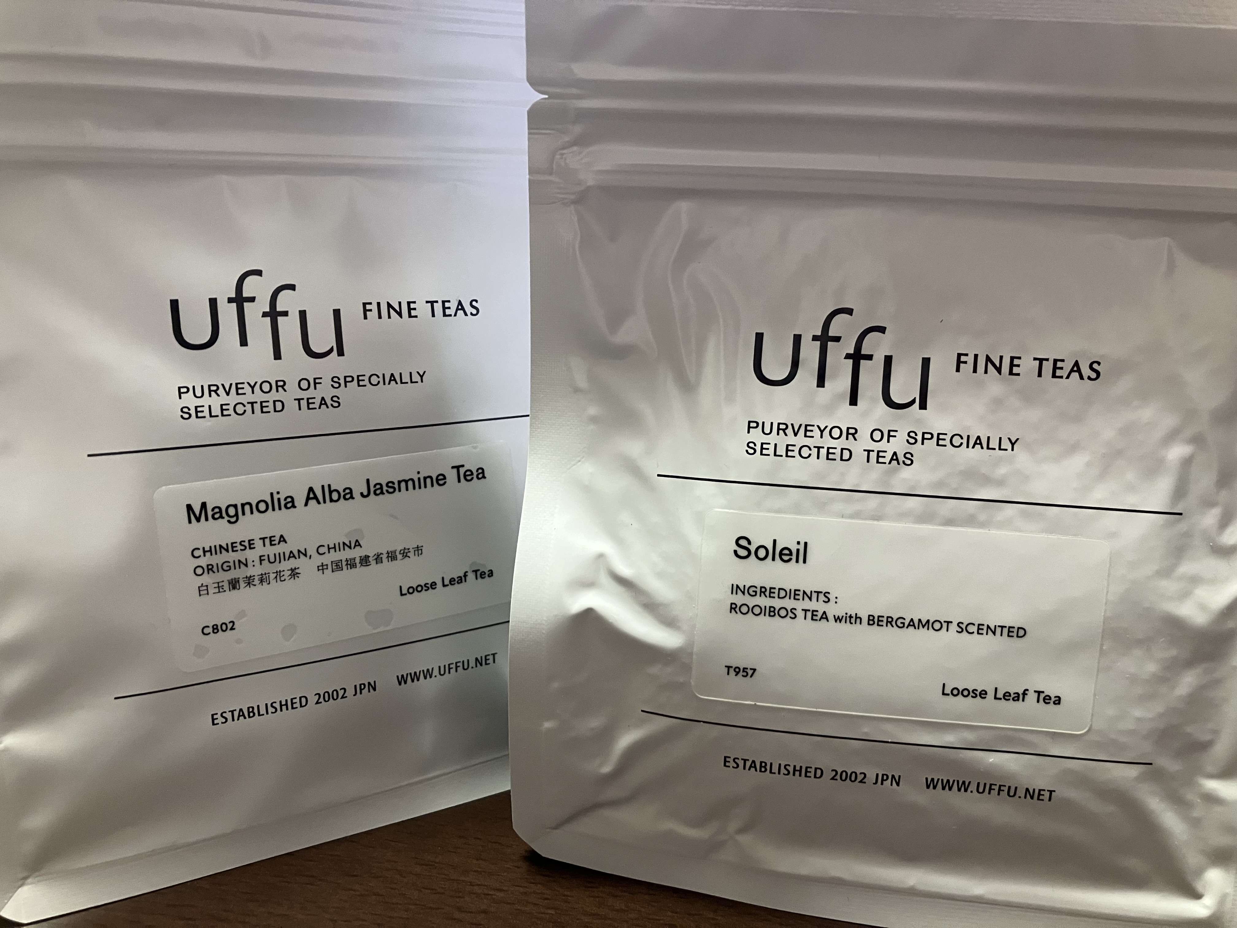 青山のウーフでソレイユとジャスミンティーを購入しました。ソレイユはルイボスティーにアールグレイの香りづけをしたもので食事にも合いおすすめです。裏面に茶葉2グラムに対してどれだけのお湯を入れたら美味しく飲めるのかを分かりやすく書いてあるのでありがたいです。