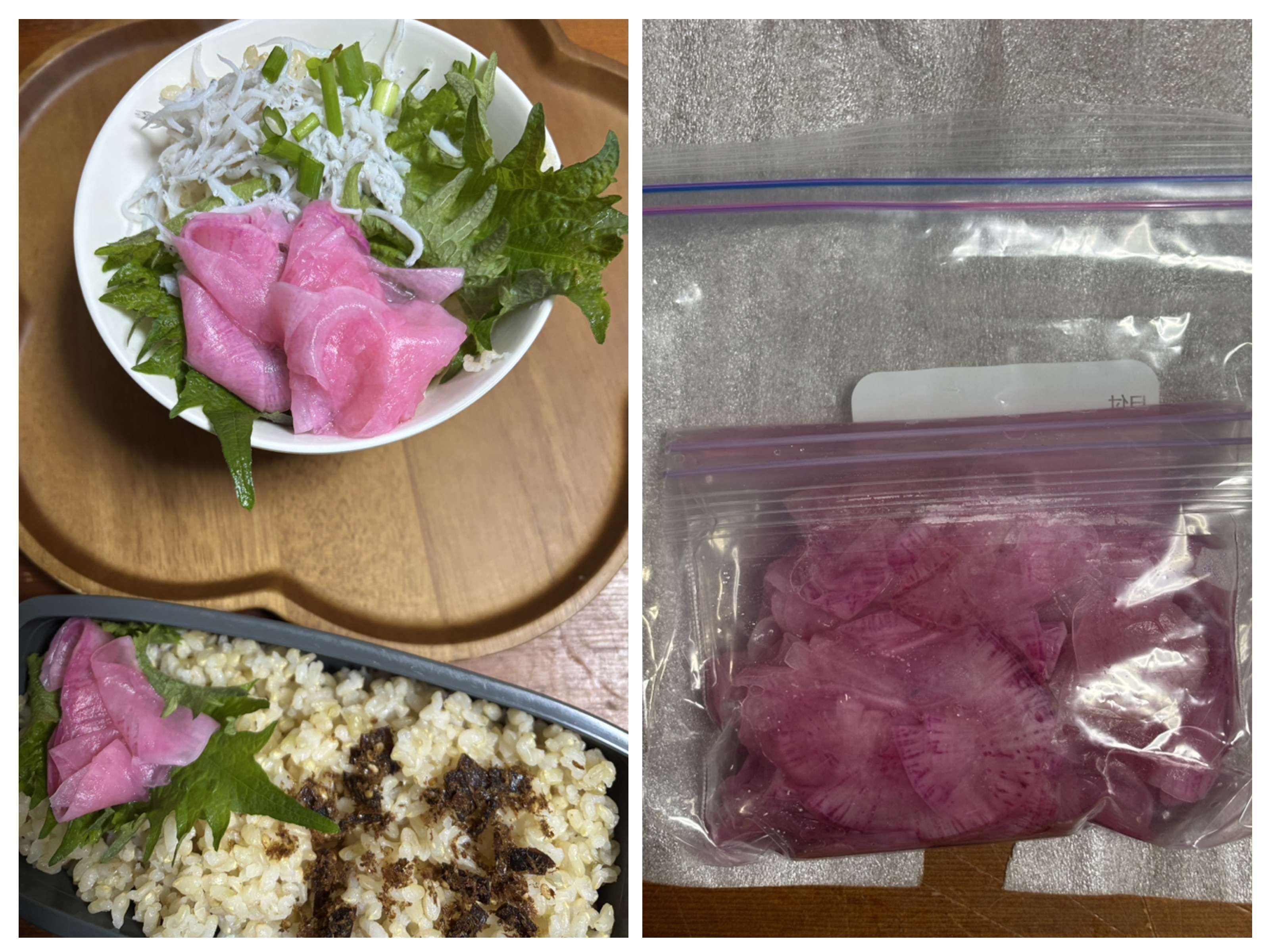 今朝はしらすご飯と一緒にいただき、家族のお弁当にもごはんの彩りとして入れてみた。添加物を使わない手作りの美味しさがある。