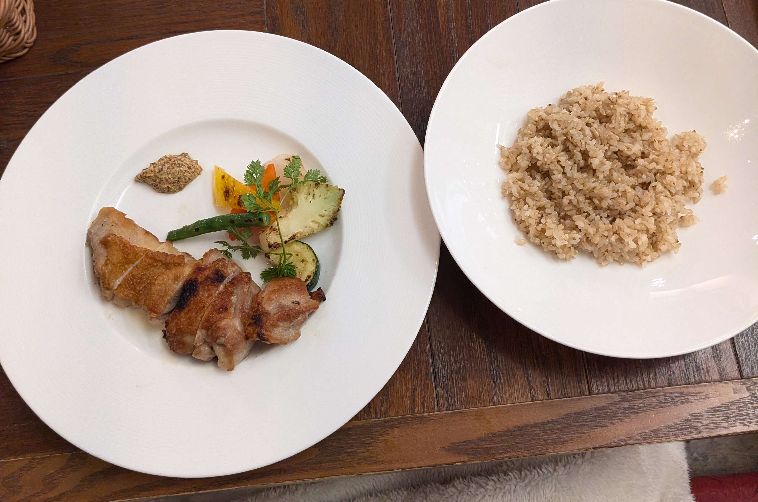 大山鶏のローストと玄米、前菜プレート✨![]()