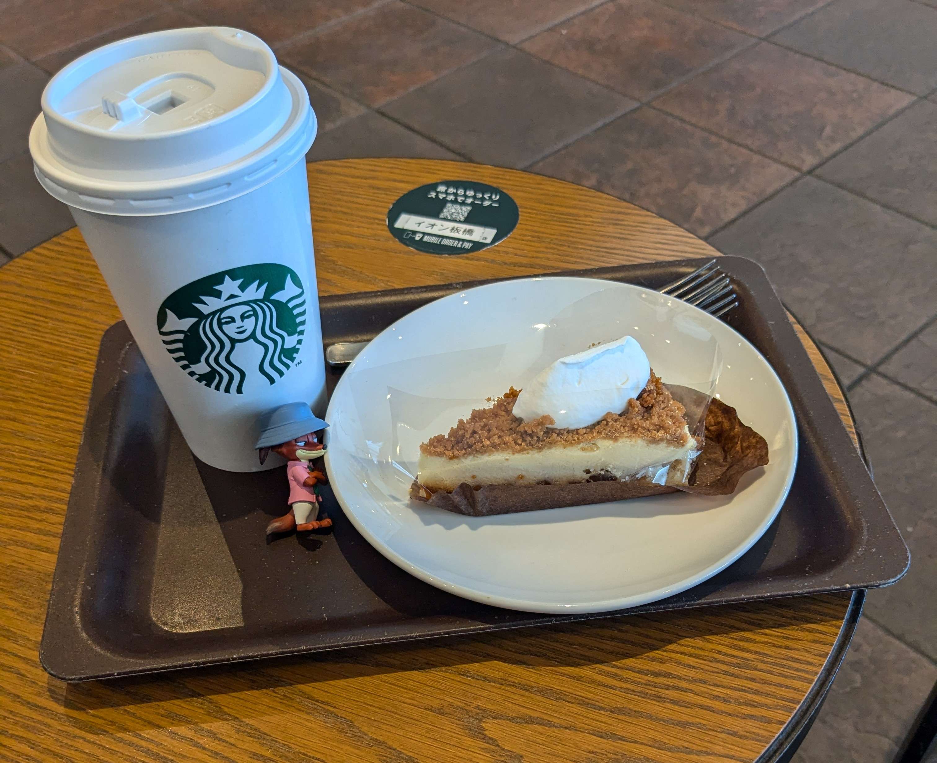 食後スタバで、ナッツ&キャラメルチーズケーキ ニック添え😋