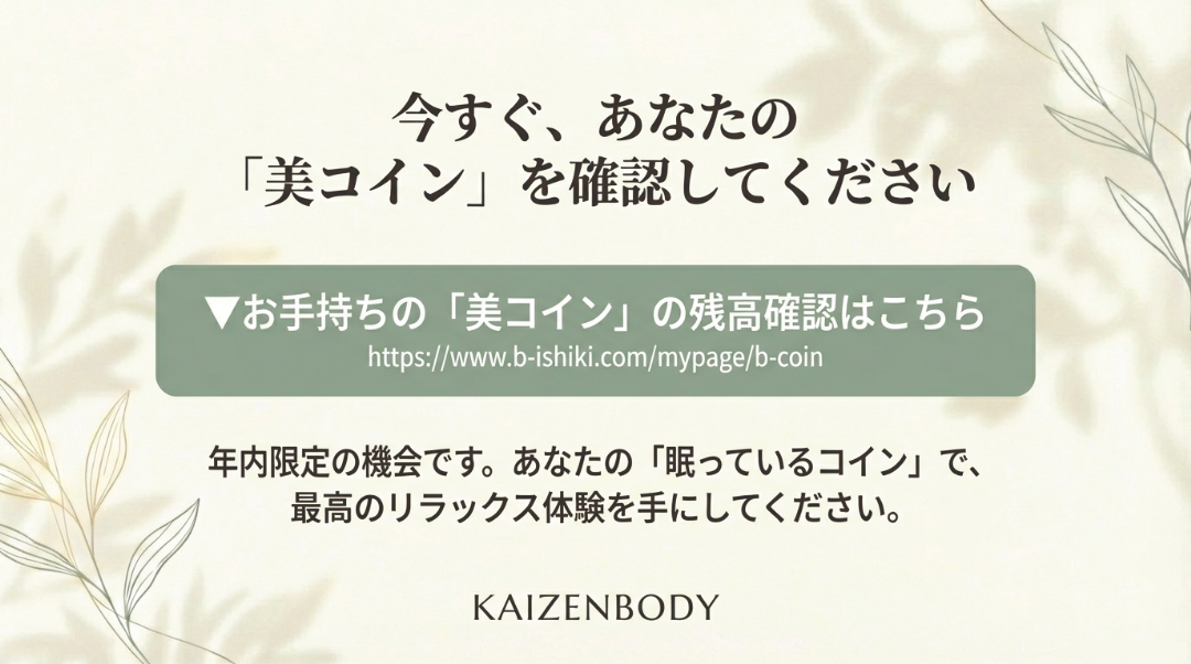皆様、ご自身のマイページを一度チェックしてみてください。 そこに、使わずに眠っている「美コイン」はありませんか?