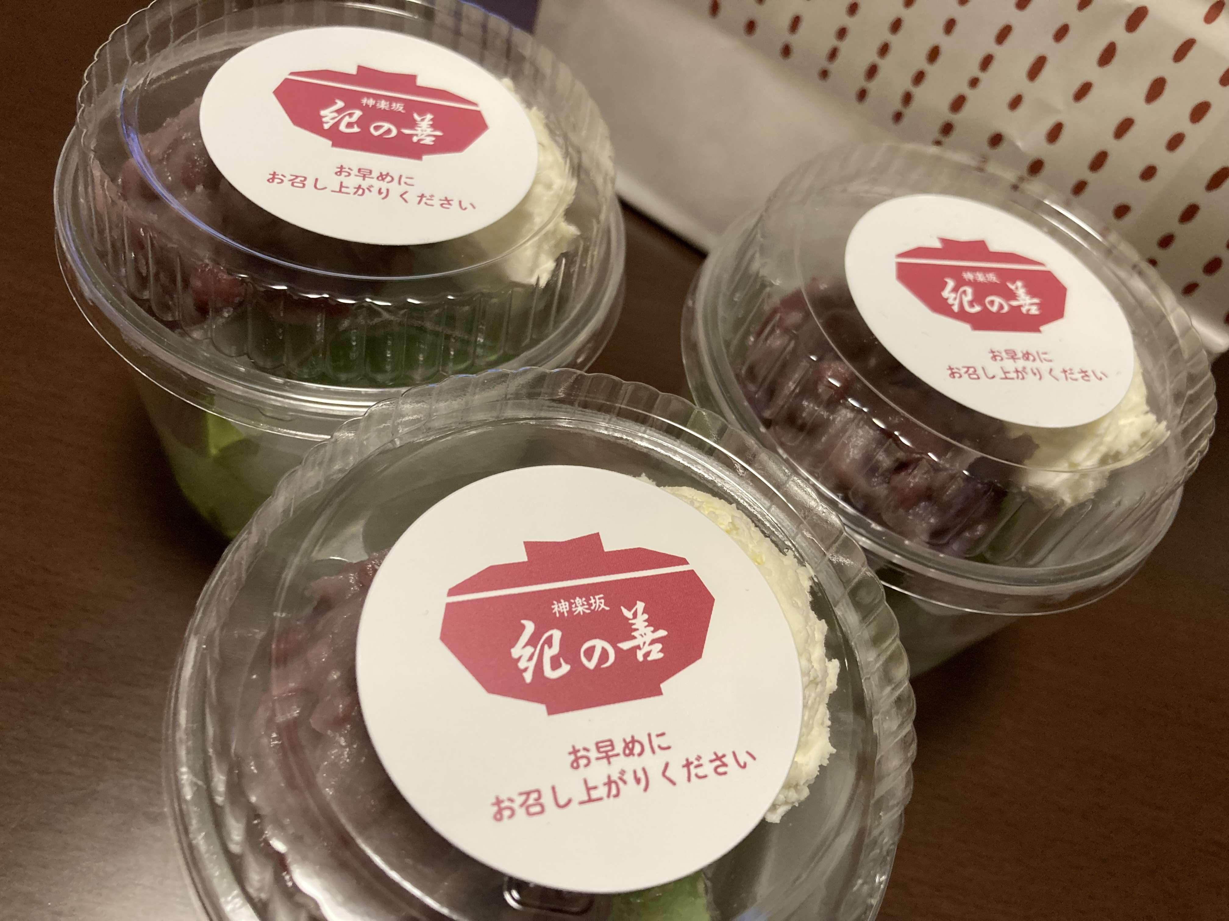 神楽坂の紀の善へ行きました。行列ができていたのでお持ち帰りしました。大好きな抹茶ババロアはいつ食べても美味しいです。あんことクリーム、抹茶の組み合わせが最高に美味しいです。店内で食べると並びますが、お持ち帰りだとすぐ買えるのでおすすめです。