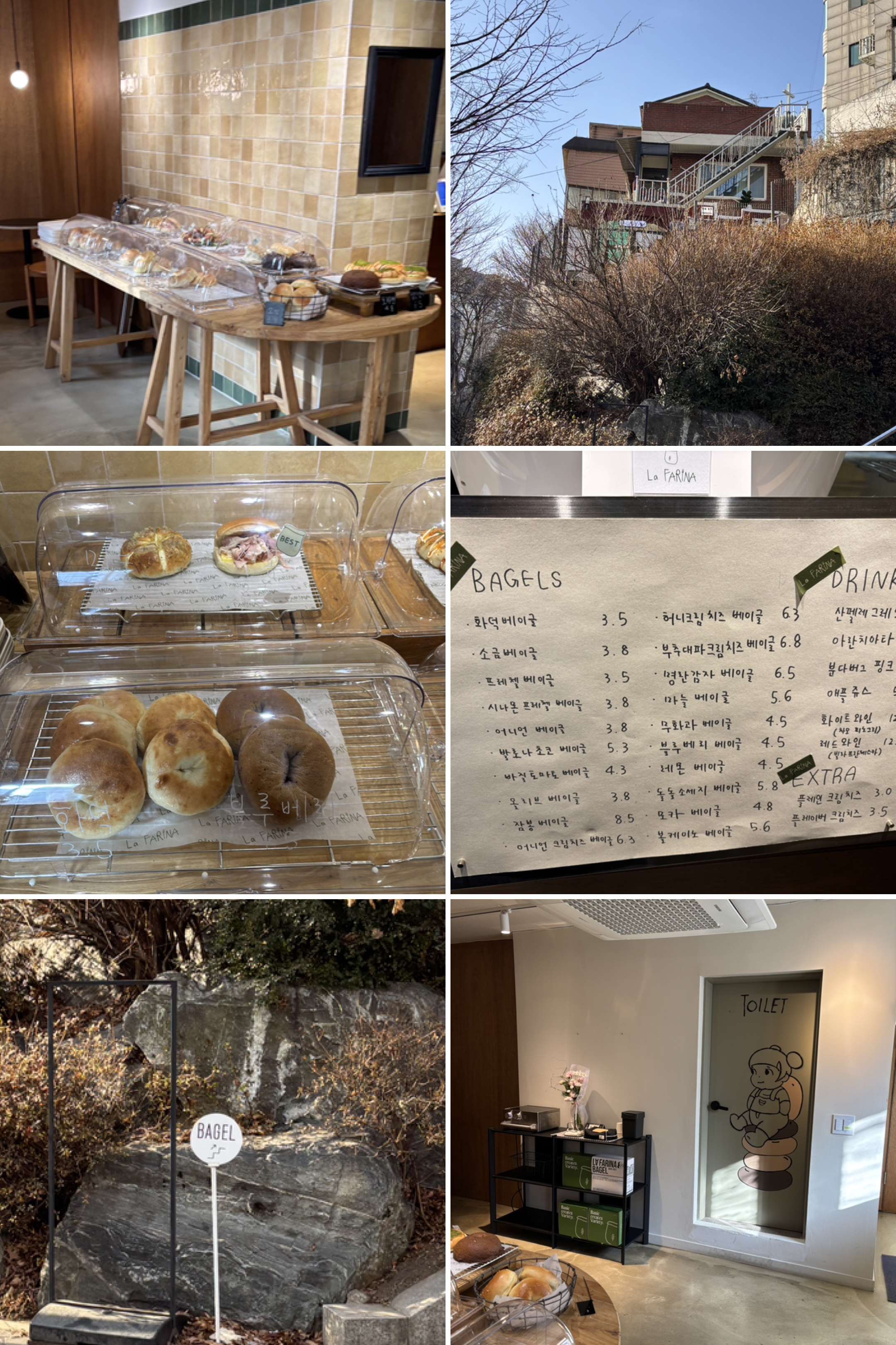 階段の上にあるお店はベーグル屋さんだった。ラフェリナベーグル??ひょっとしたら西村にあるベーグル屋さんと同じかな?と思ったら一緒だった。ここで焼いているわけではなく、焼いたベーグルを持って来て売っているそうだ。そしてこのお店にはコーヒーマシンもなく、コーヒーを提供していないそうだ。珍しい。
