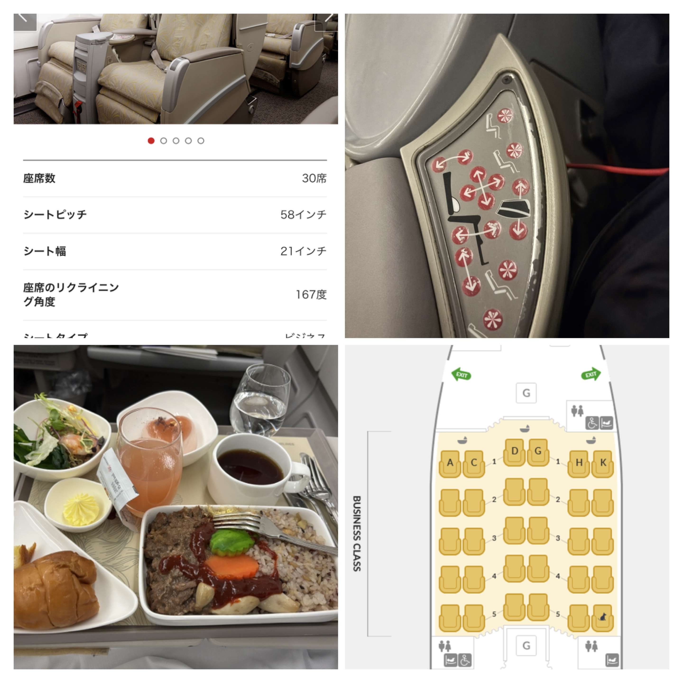 行きのビジネスクラスは多分満席だったが、帰りは私の隣りも前も空席だった。