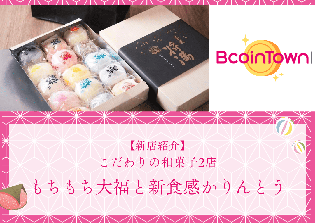 本日は、BcoinTownに新しく仲間入りした「素材」にこだわり抜いた2つの和菓子店をご紹介します。