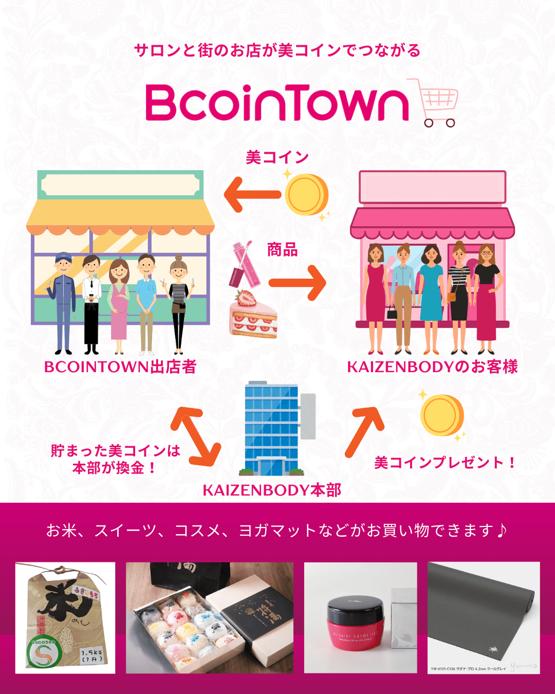 アンケート投稿や回数券を購入するとGETできる美コインは、BcoinTownの掲載店でのお買い物に利用することができます。