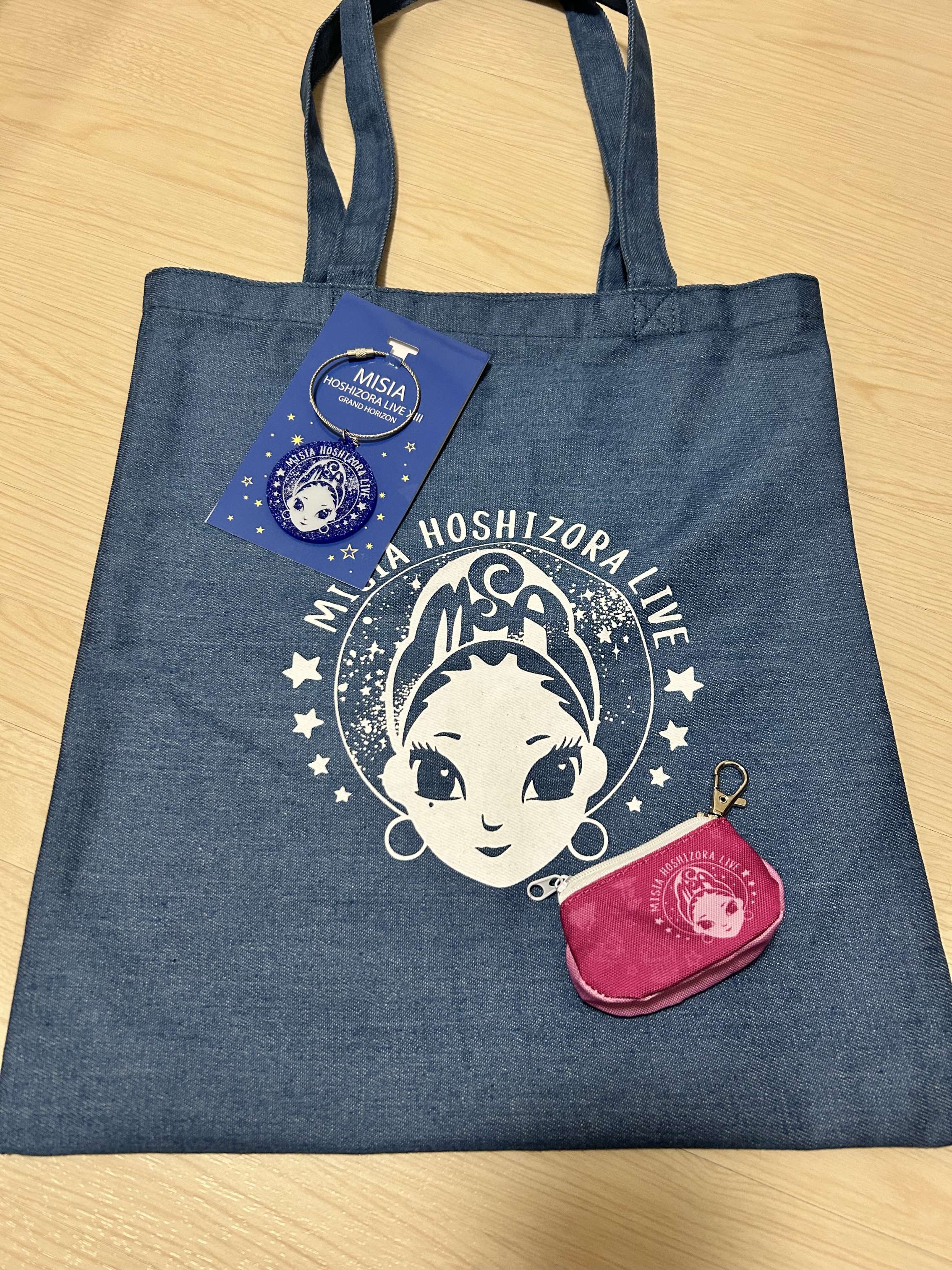 デニム風のバッグで、キーホルダーとお揃いです。何に使おうか、考えます。