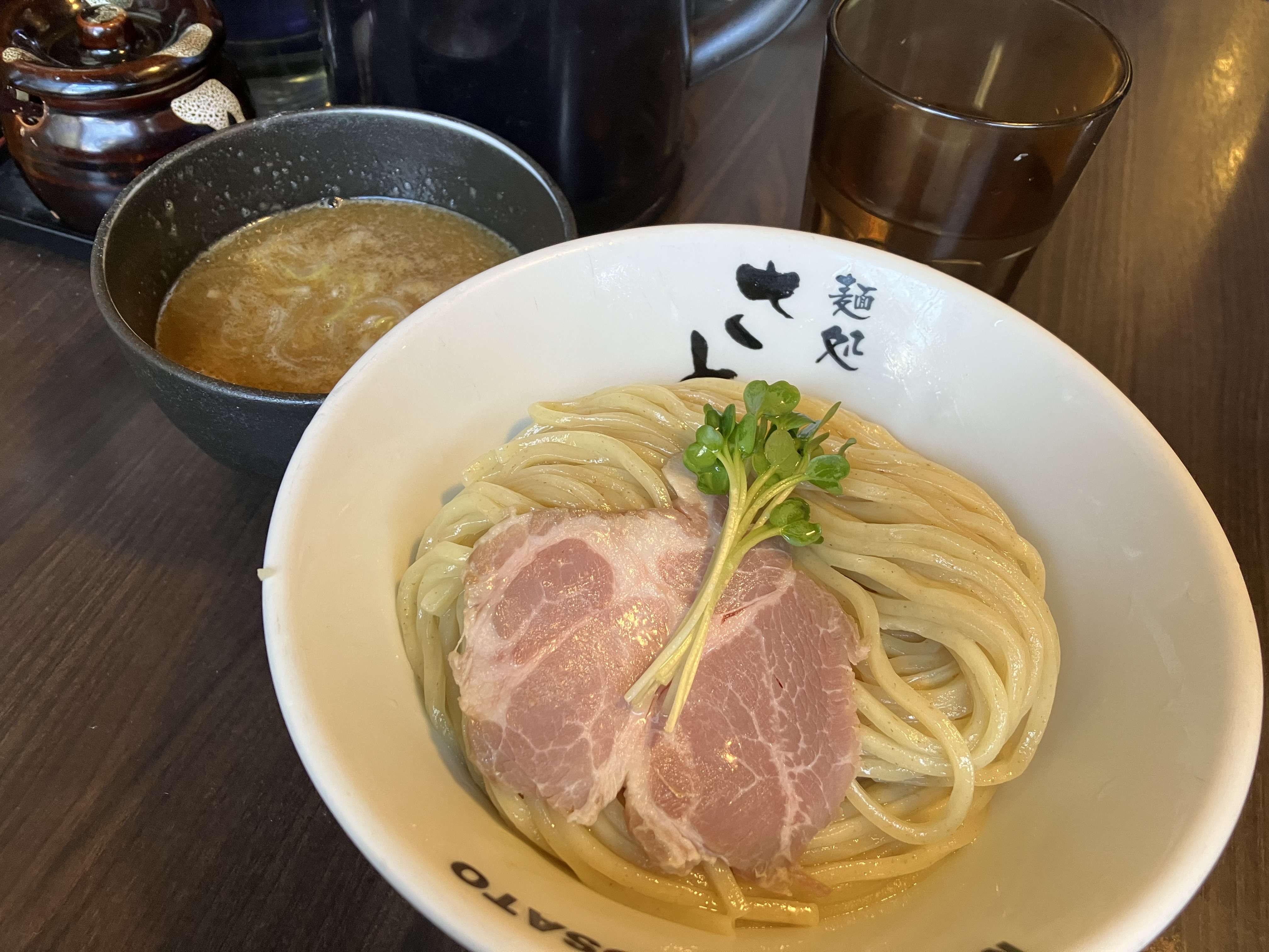ランチで麺処さとうへ行きました。大人気のお店で、昼過ぎに行ったのですが大行列でした。テレビの取材もちょうど来ていて驚きました。並んだ甲斐もあって美味しいつけ麺をいただくことができました。