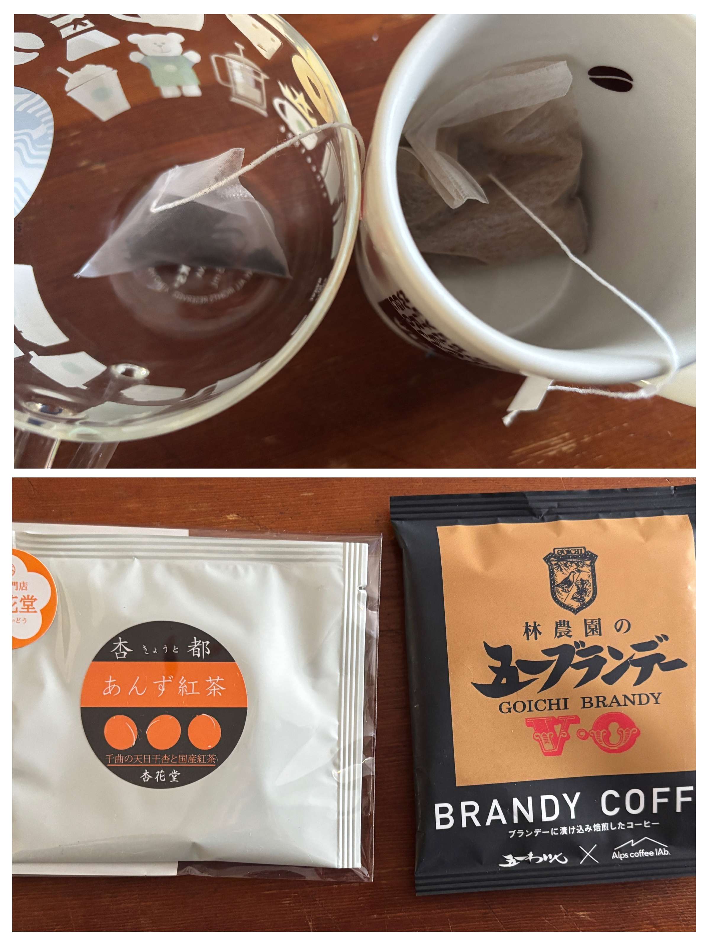 長野県千曲市に行った時に、特産品のあんずを使ったあんず紅茶と、同じくあんずの里物産館で購入したブランデーコーヒーを買ってみた。