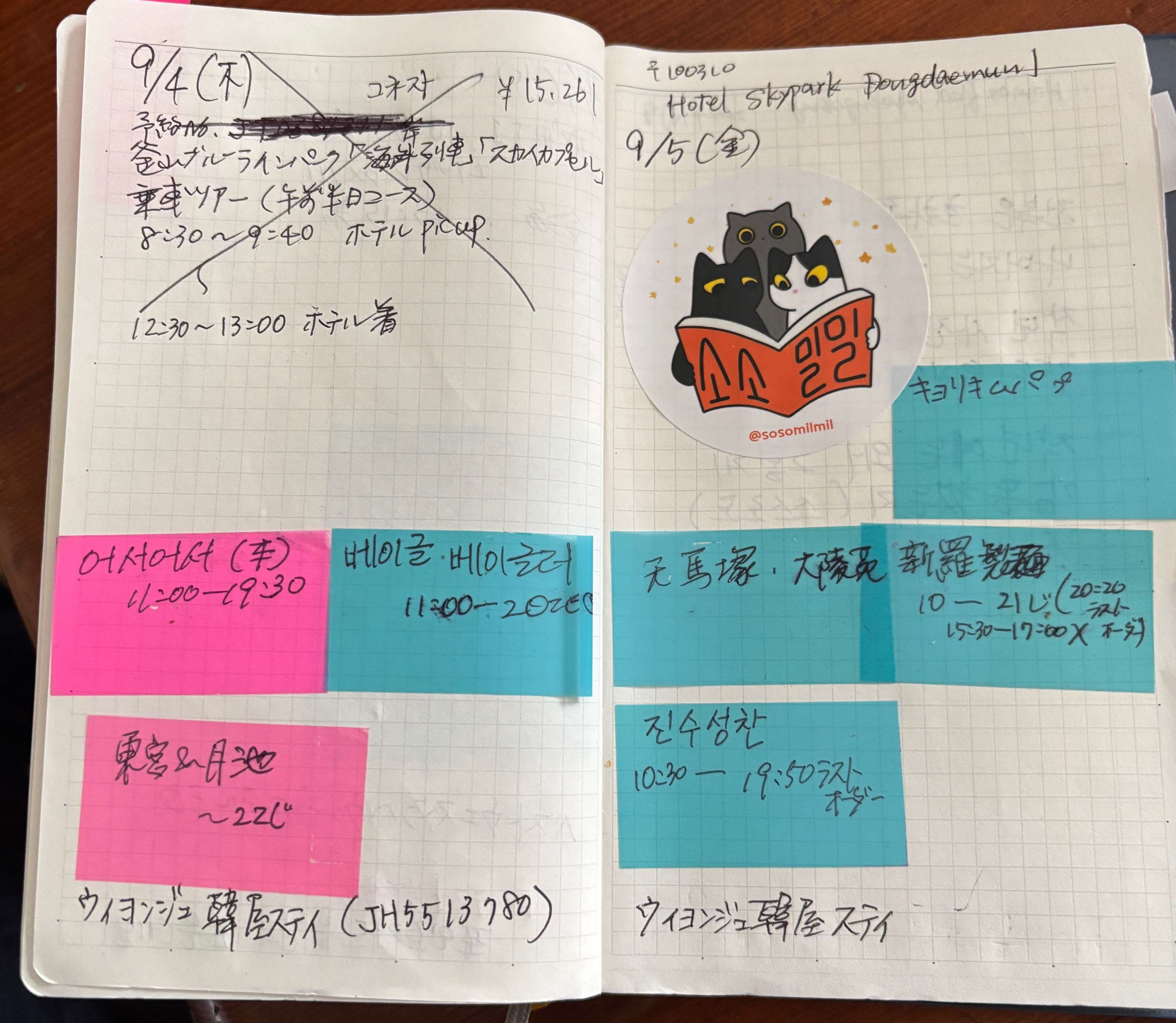 私の手帳には行きたいお店の情報を書いたポストイットがたくさん貼ってある。