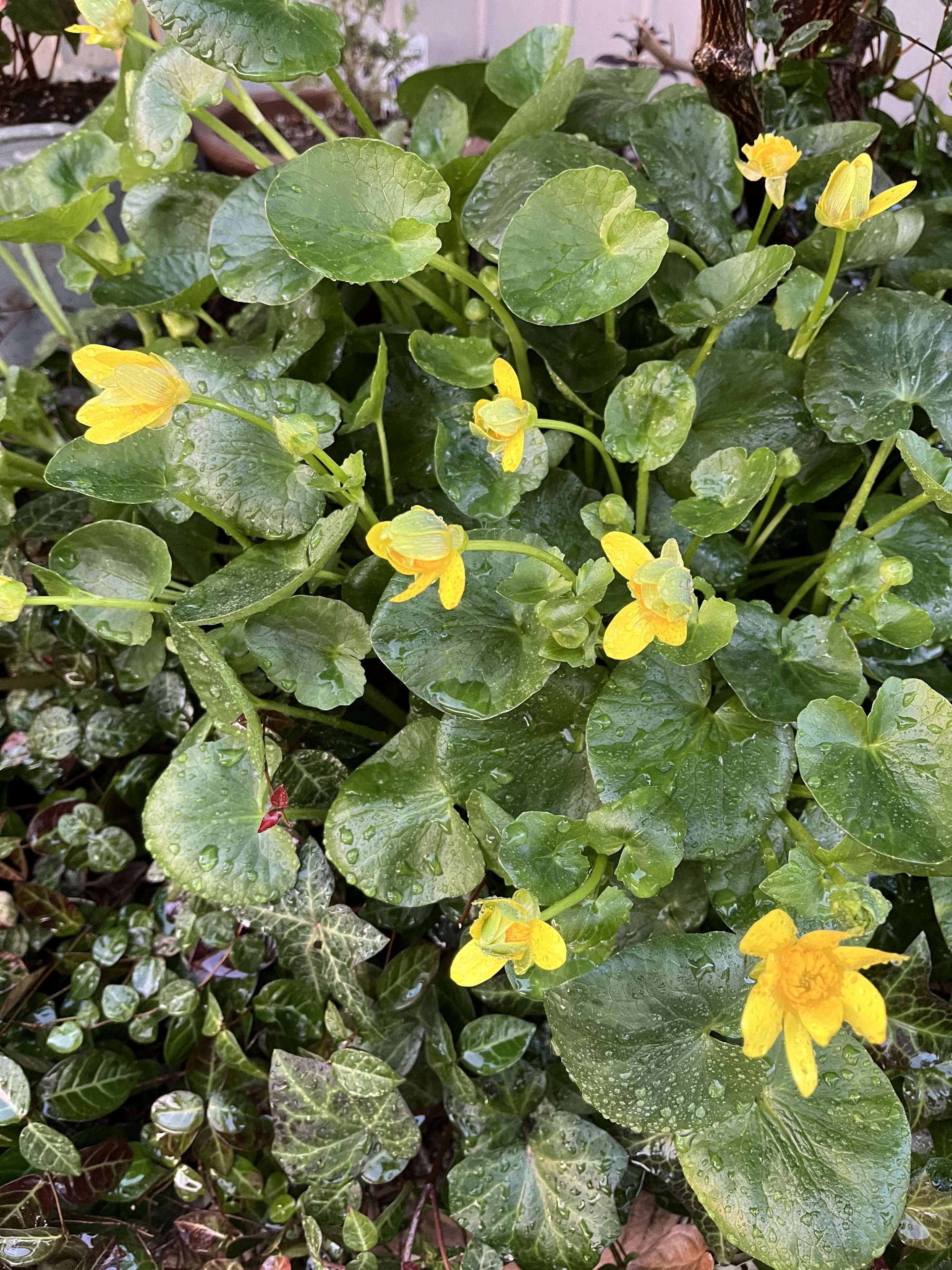 この時期になると葉が出て黄色い花を咲かせて小さな庭を賑やかにしてくれるリュウキンカです。