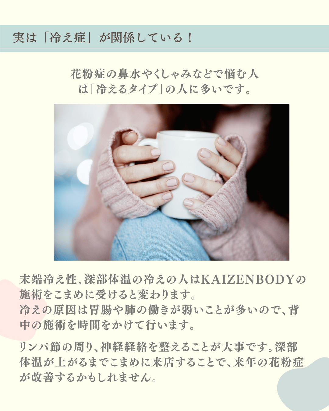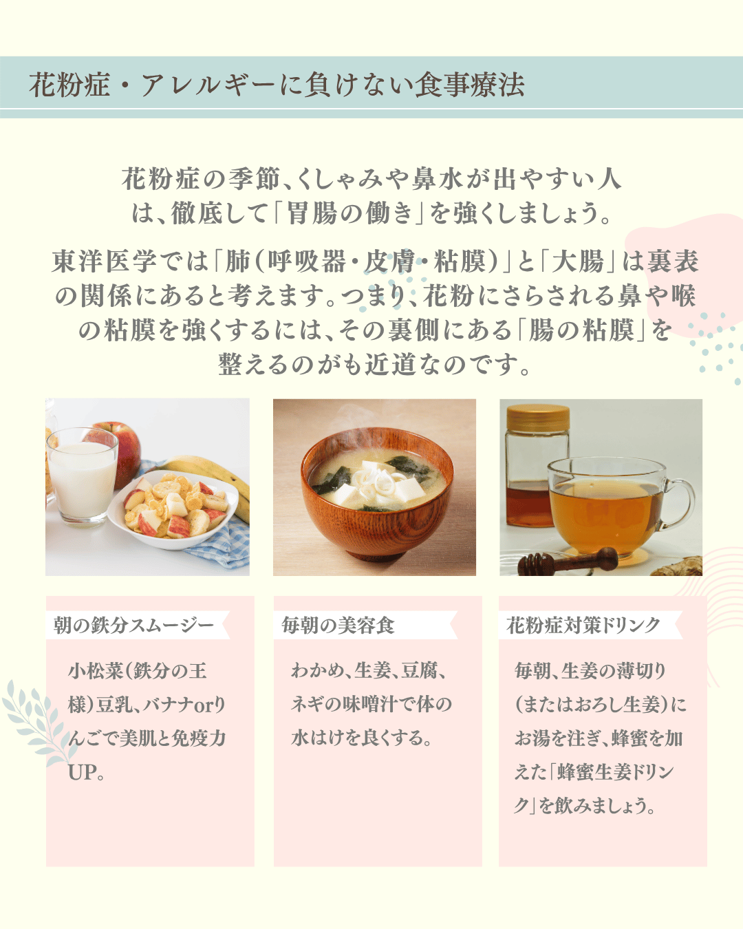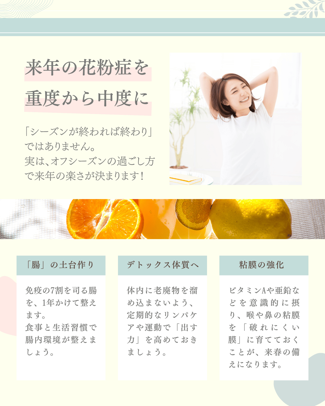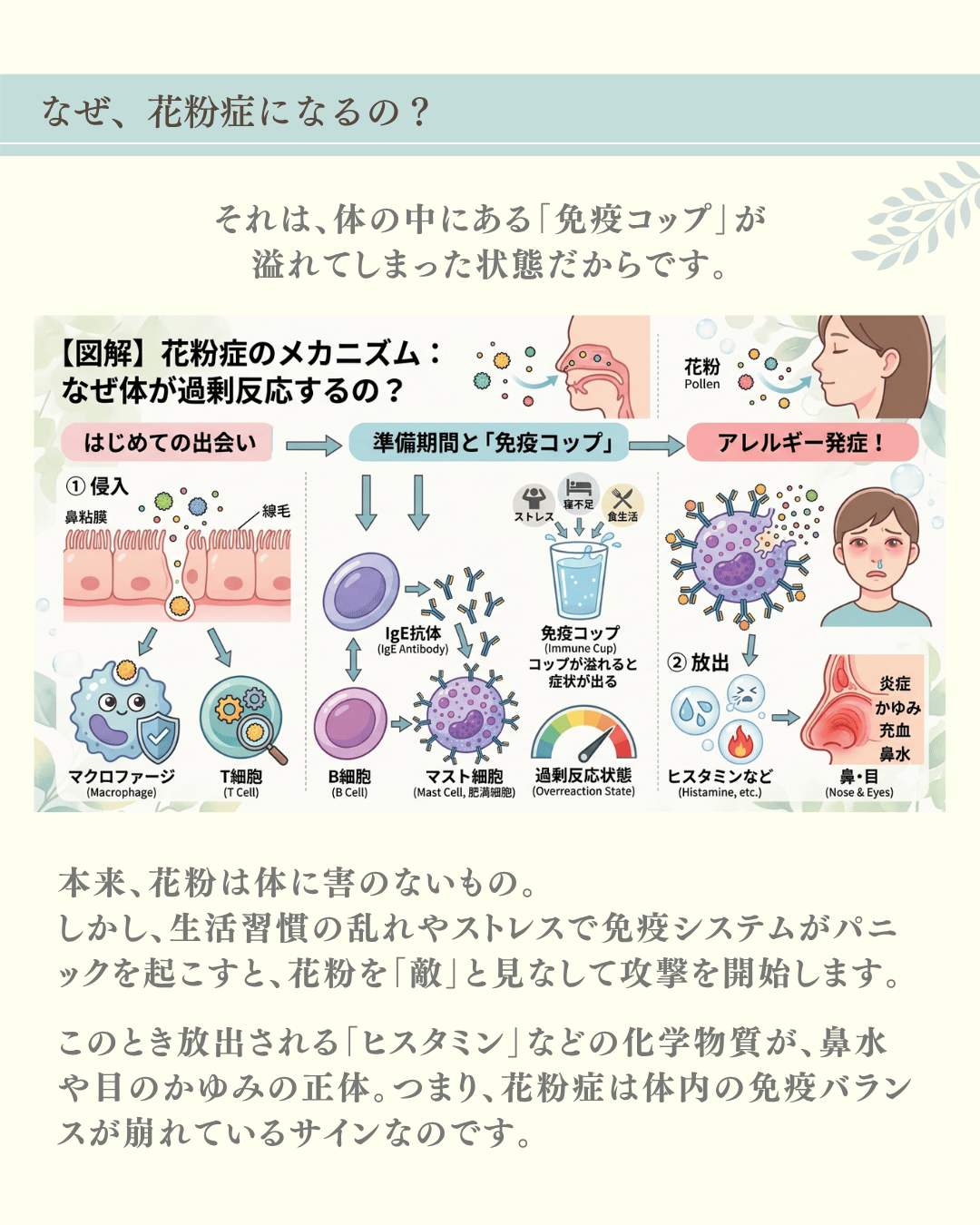 今日は、そんなつらい季節を少しでも軽やかに過ごすために、「体の中から変える花粉症対策」をお届けします。