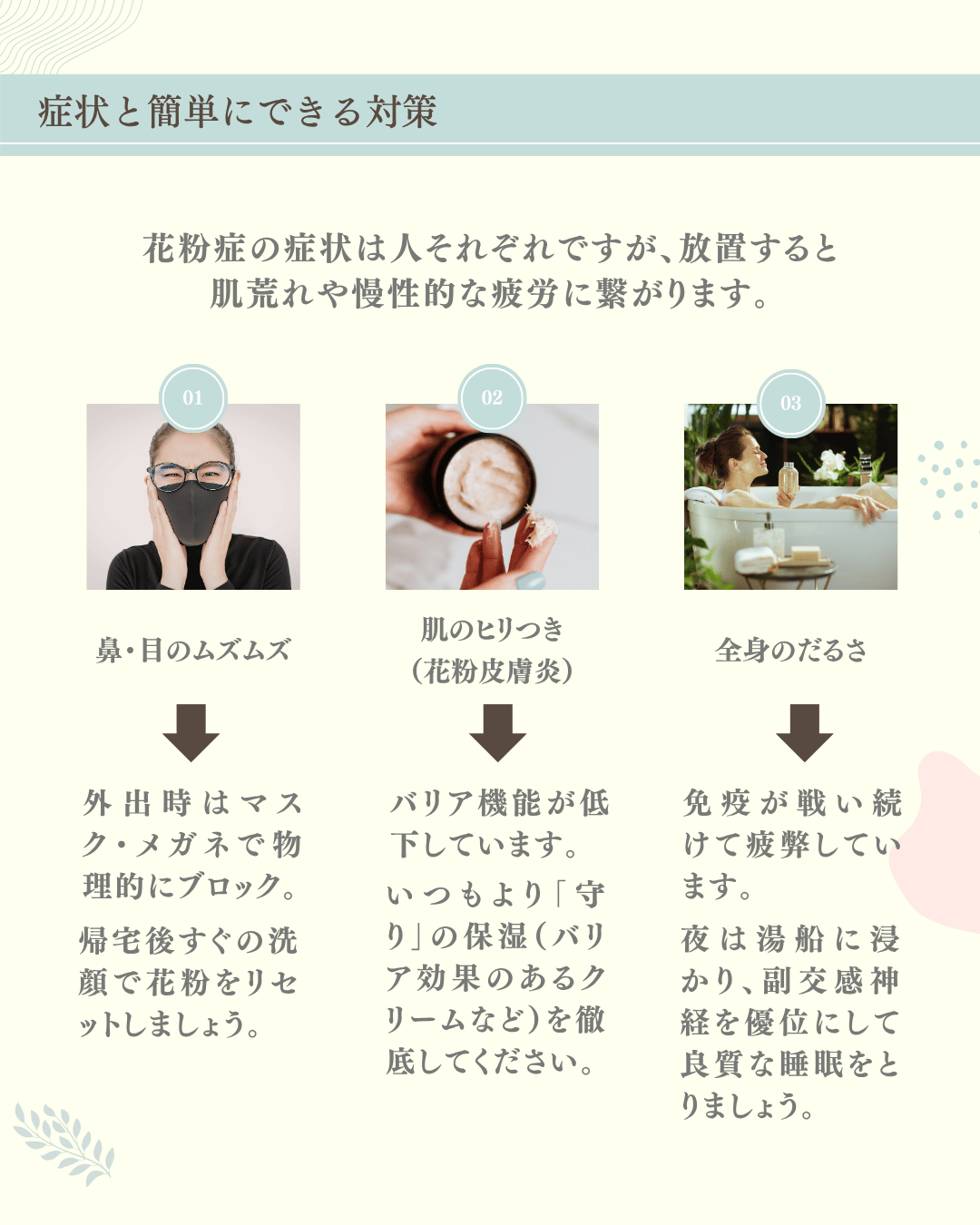 花粉症は、鼻や目だけでなく、実は「肌」や「心」の元気まで奪ってしまうもの。
