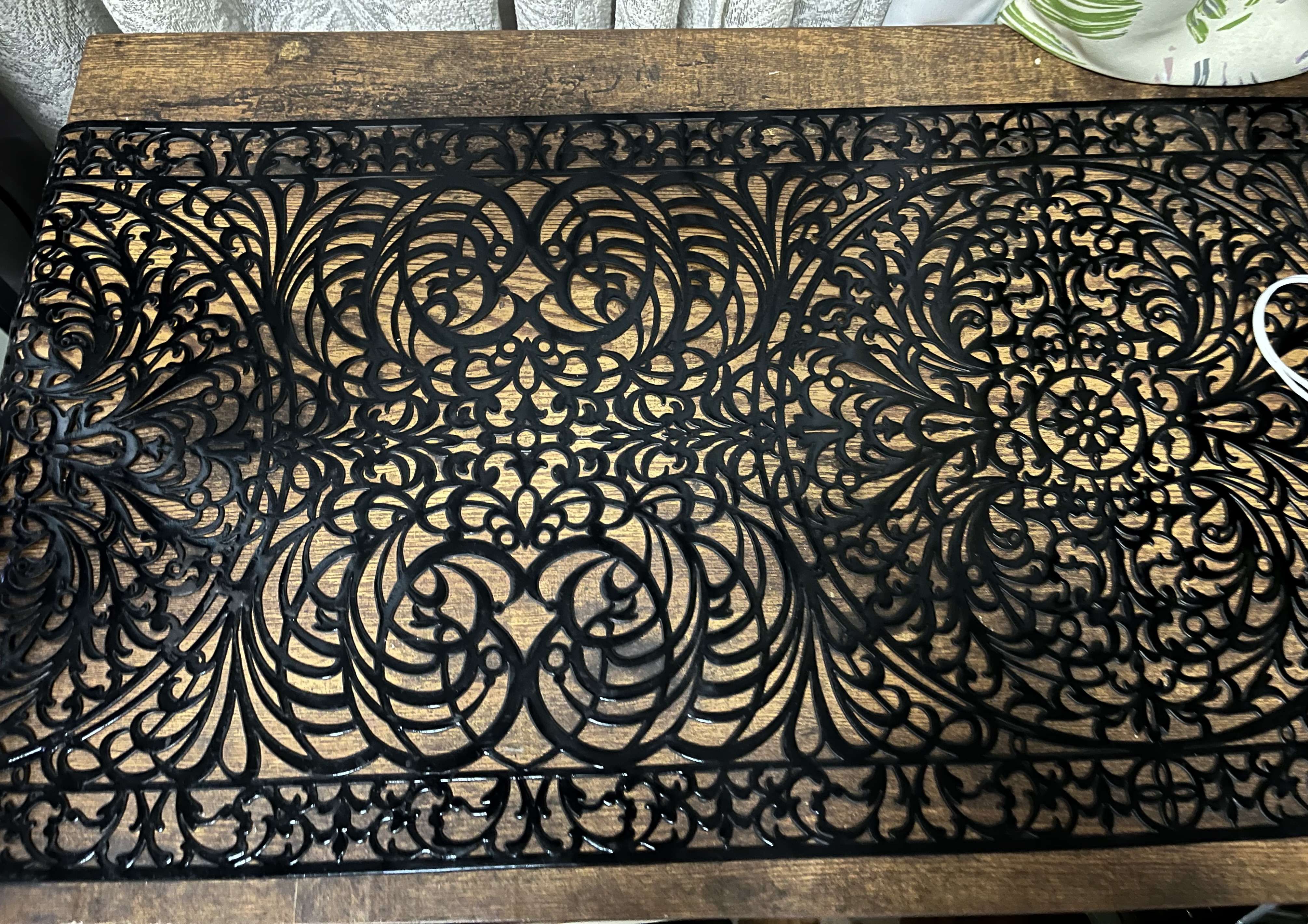 リビングのローボードの上に敷きました。