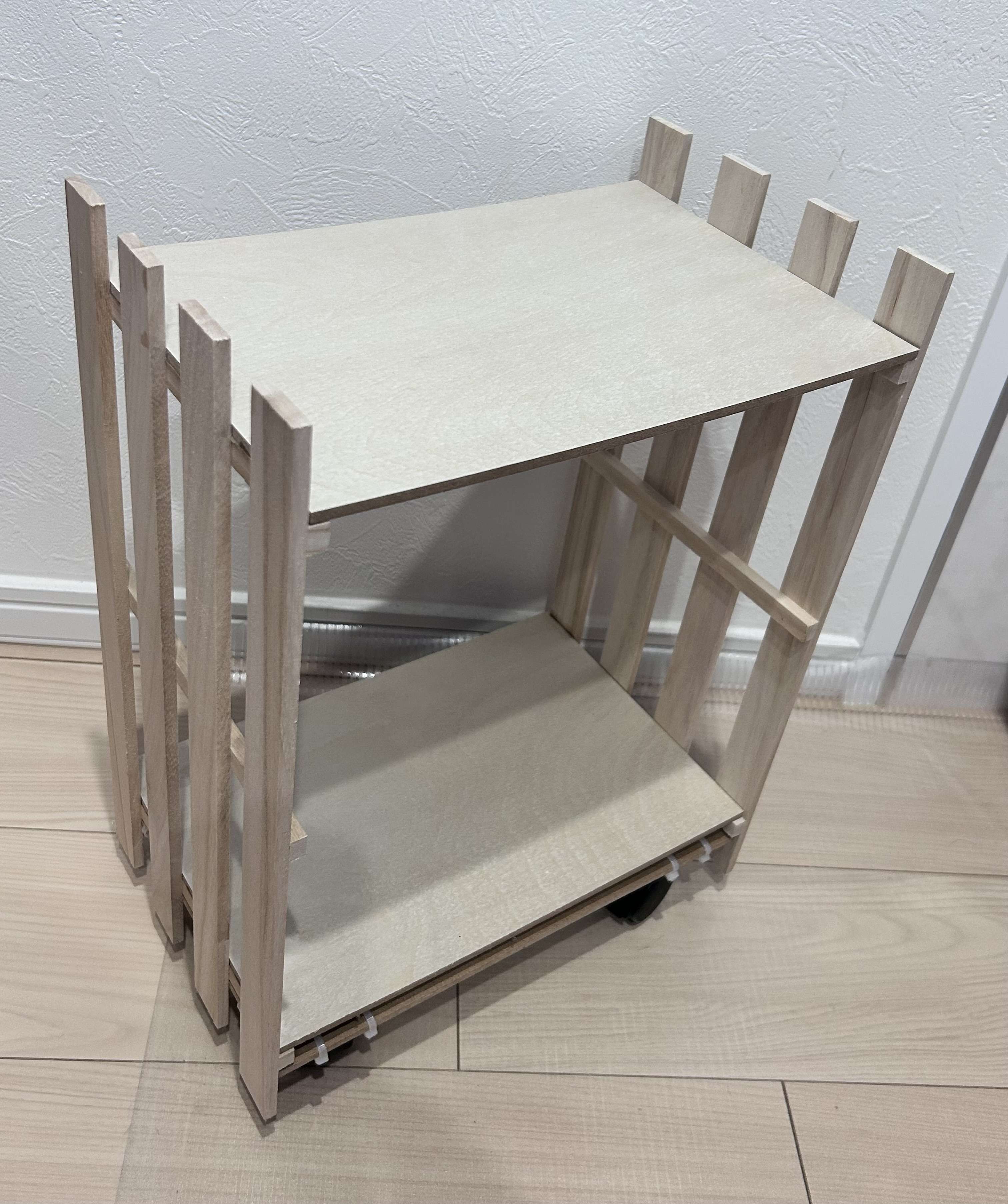 100均で買ったすのこ5枚でラックを作りました。 釘で補給するのが良いのですが、とりあえずボンドだけ。 一晩でしっかりくっつきます。 トイレ用に作ったのですが、我が家のトイレは狭い💦 形も用途に合っていなくて、彷徨ってます。 頭で想像して、サイズを測って、あれこれやってますが、思い通りにはなりません。