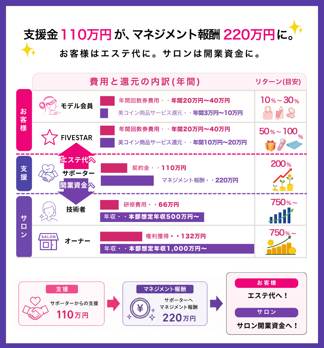 実際に開業した場合、想定リターンは750%以上。オーナーになれば年収1,000万円も現実的に!