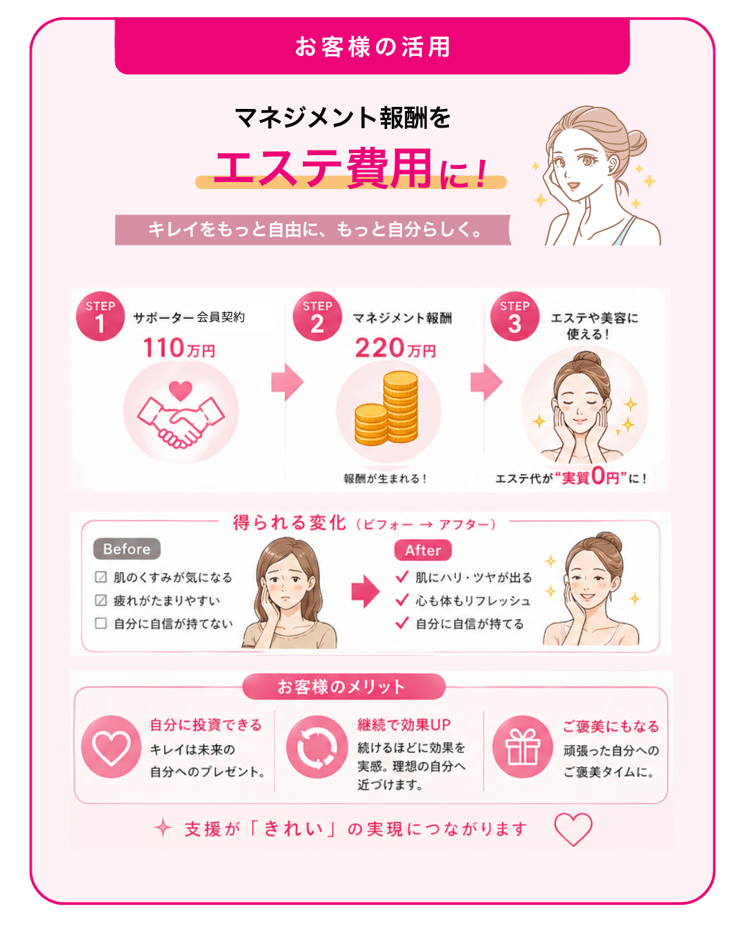 マネジメント報酬220万円に加えて、美コイン3,600coinがもらえるチャンスとなりますので、お早めにお申し込みくださいね。