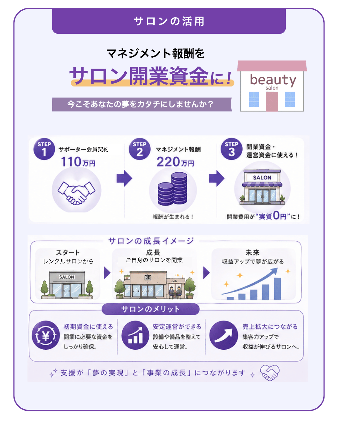もう一つは、あなたの夢をかたちにする「サロン開業資金」としてあなた自身の未来に投資することです。
