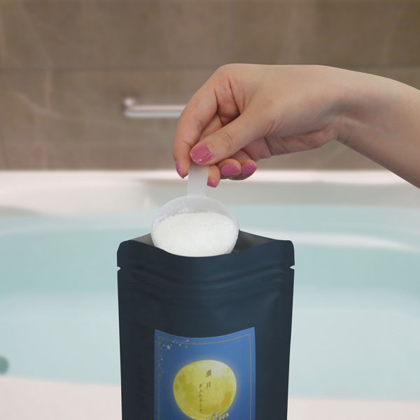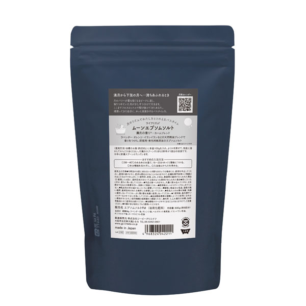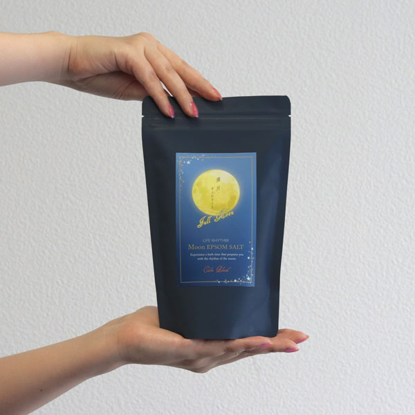 「ムーンエプソムソルト」は、月のリズムをイメージした天然精油のブレンドオイルで香りをつけたエプソムソルト。