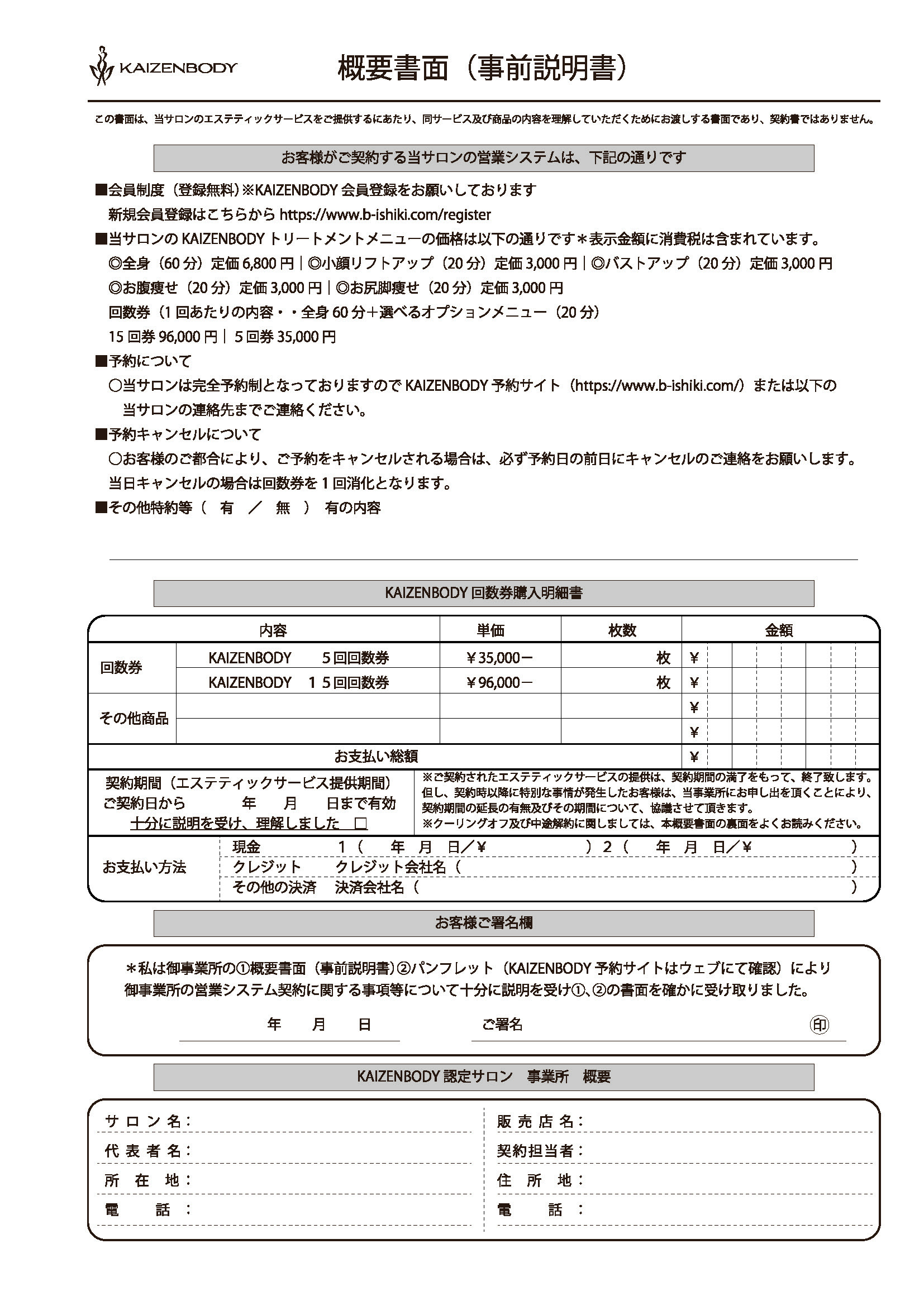 KAIZENBODY事前説明書(A4 2枚複写50組/冊)