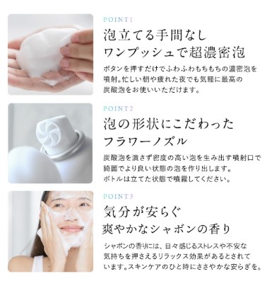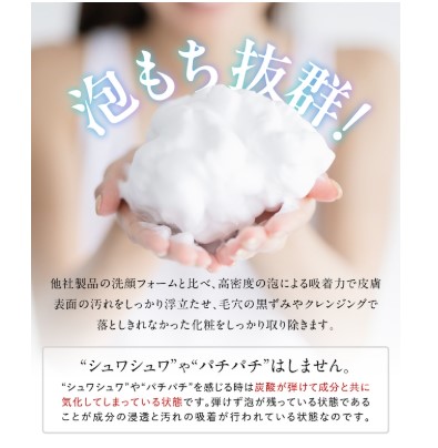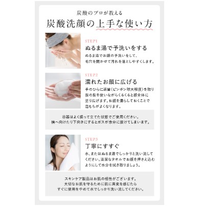 きめ細かいクリーミーな炭酸泡が肌や毛穴の汚れをきれいにし透明感やハリ・潤いのある肌へと導きます。