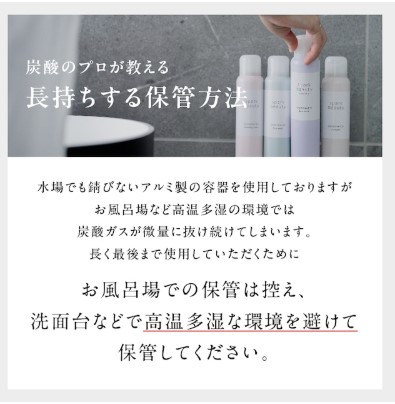炭酸が血管に入り込むと血中二酸化炭素濃度が高くなり、脳が血中酸素不足になったと錯覚します。それにより血液を造作させるため血管が拡張し血流がよくなるためお肌を活性させます。